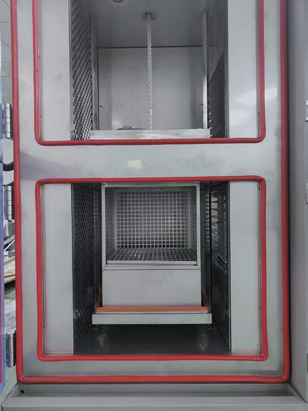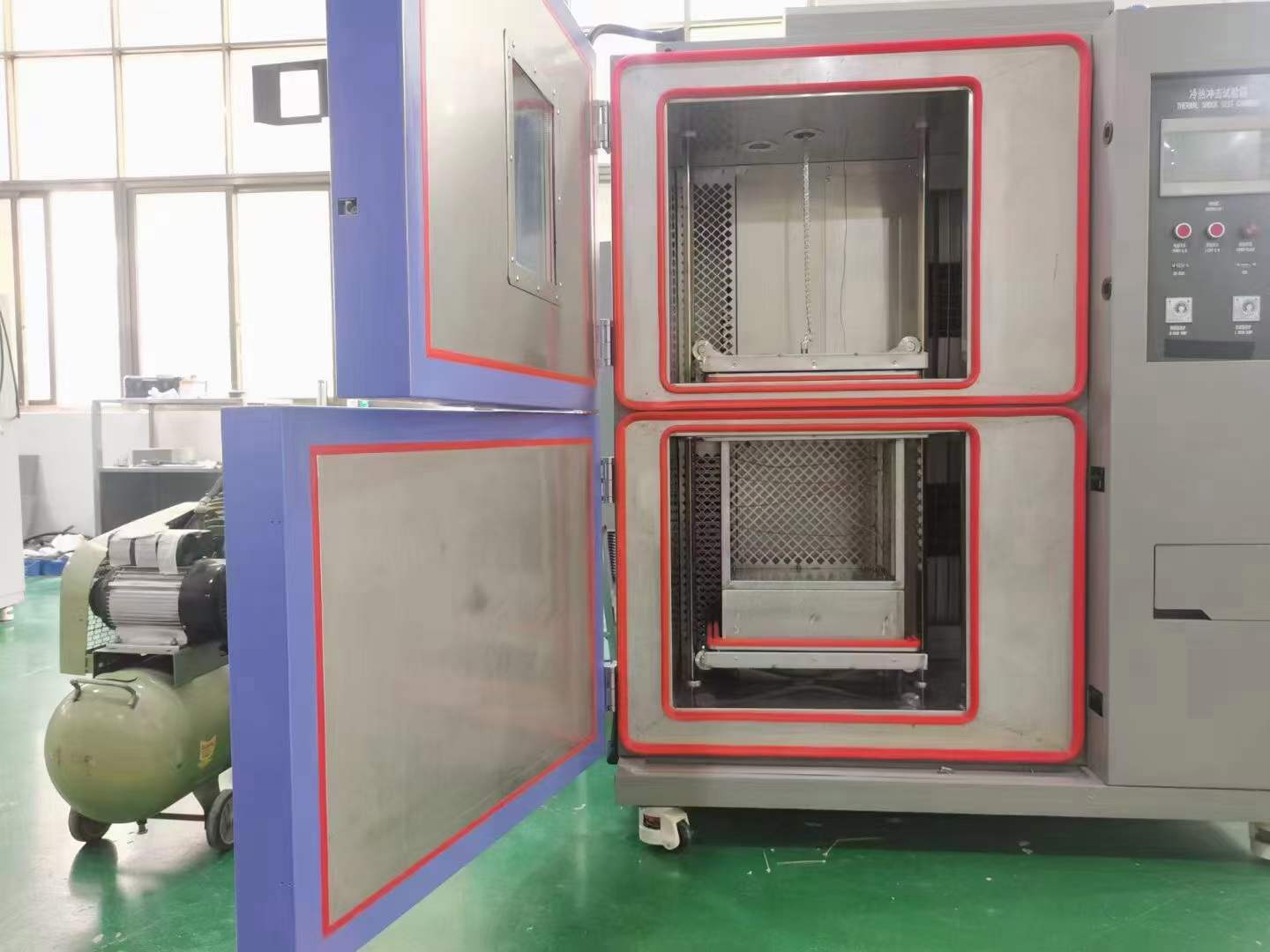 兩箱式冷熱沖擊試驗箱在高低溫室內切換轉移,采用吊籃移動式控制,轉換時間短符合國標要求,溫度恢復時間短,溫變速度快,設備整體結構緊湊,體積小,采用兩箱法,提高了工作室的溫度均勻性。