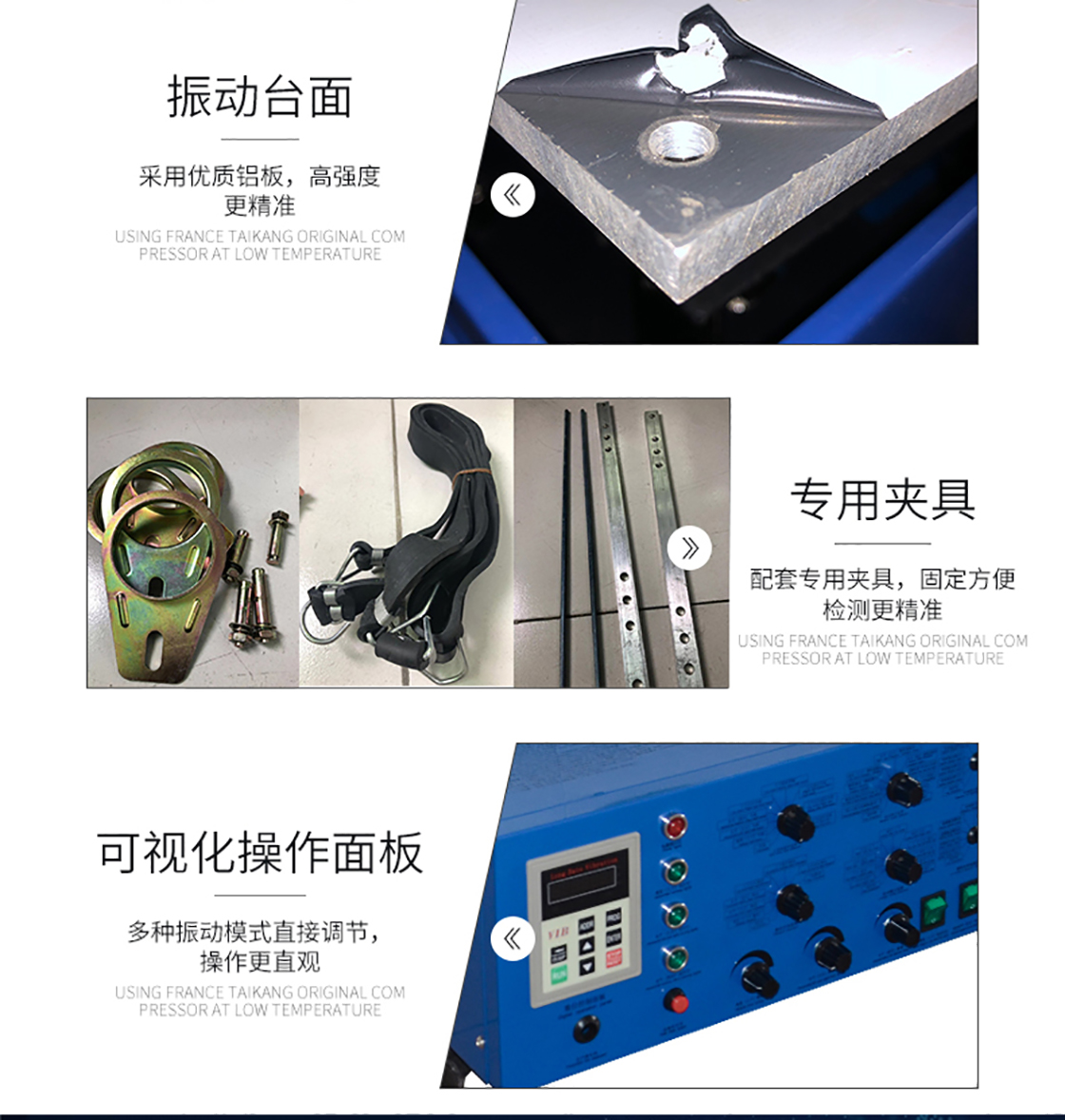 模擬實際工況考核和結構強度試驗,產品應用范圍廣泛、適用面寬、試驗效果顯著、可靠。正弦波、調頻、掃頻、可程式、倍頻、對數、最大加速度,調幅,時間控制,全功能電腦控制,簡易定加速度/定振幅。設備通過連續無故障運轉3個月測試,性能穩定,質量可靠。